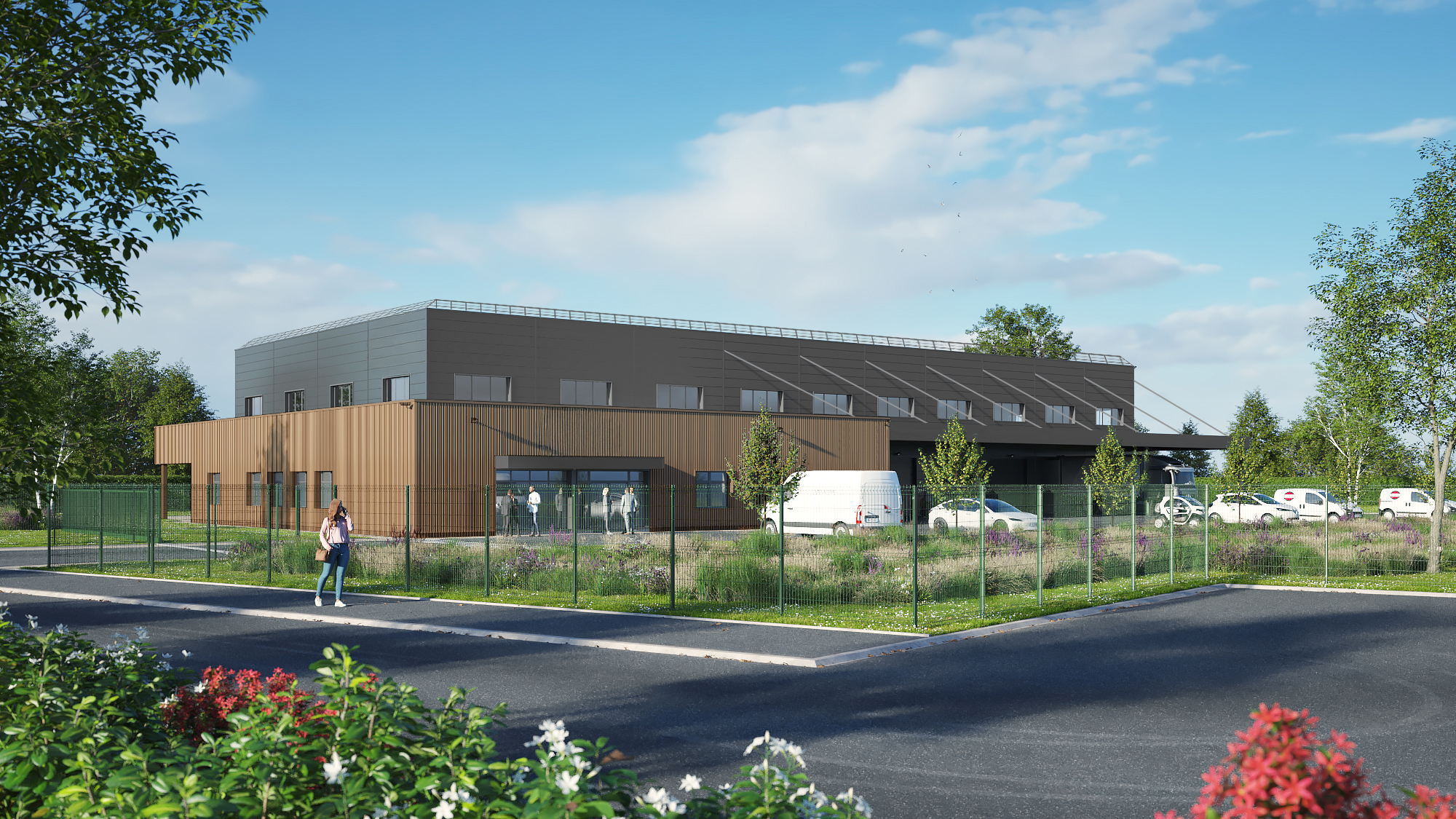 Les espaces verts seront engazonnés et plantés, avec l’aménagement de noues paysagères permettant la gestion et l’infiltration des eaux pluviales issues de la toiture et des surfaces imperméabilisées.
