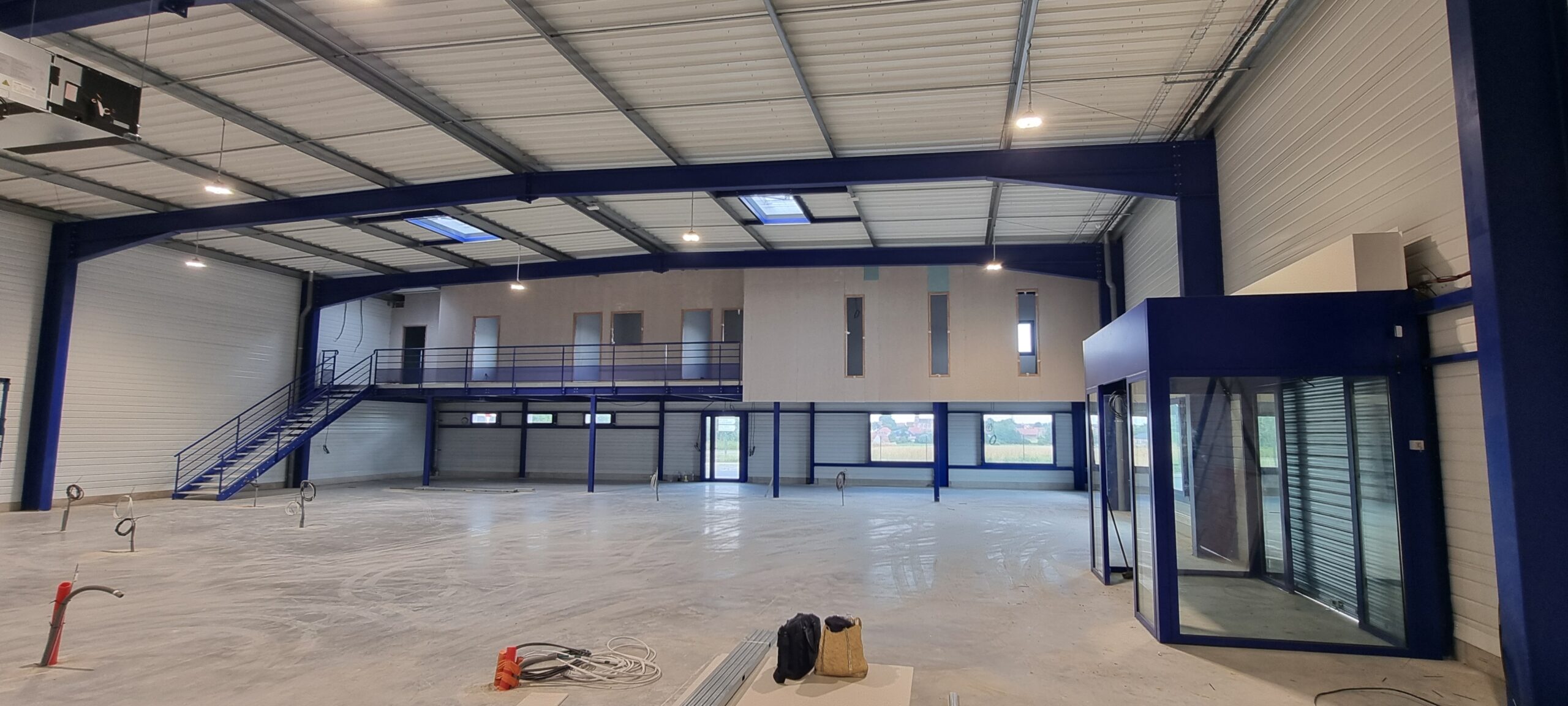 - Une zone chaude de 754 m² de surface de plancher, isolée et chauffée, comprenant un espace libre-service, un showroom d’exposition, des bureaux ainsi que des locaux sociaux, dont une partie est aménagée sur mezzanine.