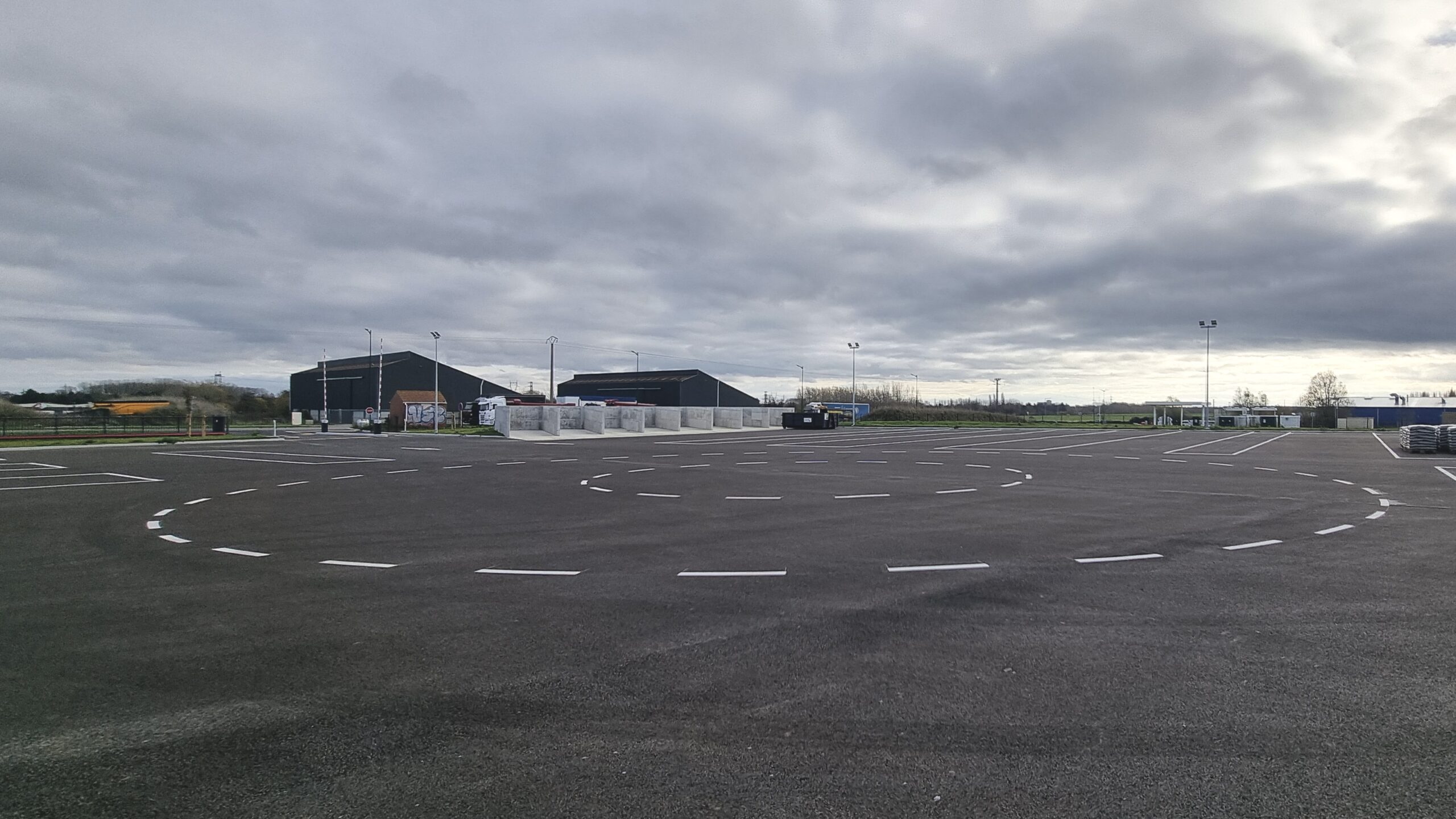 Les aménagements extérieurs ont été conçus pour assurer une circulation fluide et sécurisée des véhicules légers et poids lourds. Une étude de giration spécifique a permis de valider les manœuvres des poids lourds, même dans les configurations les plus contraignantes.